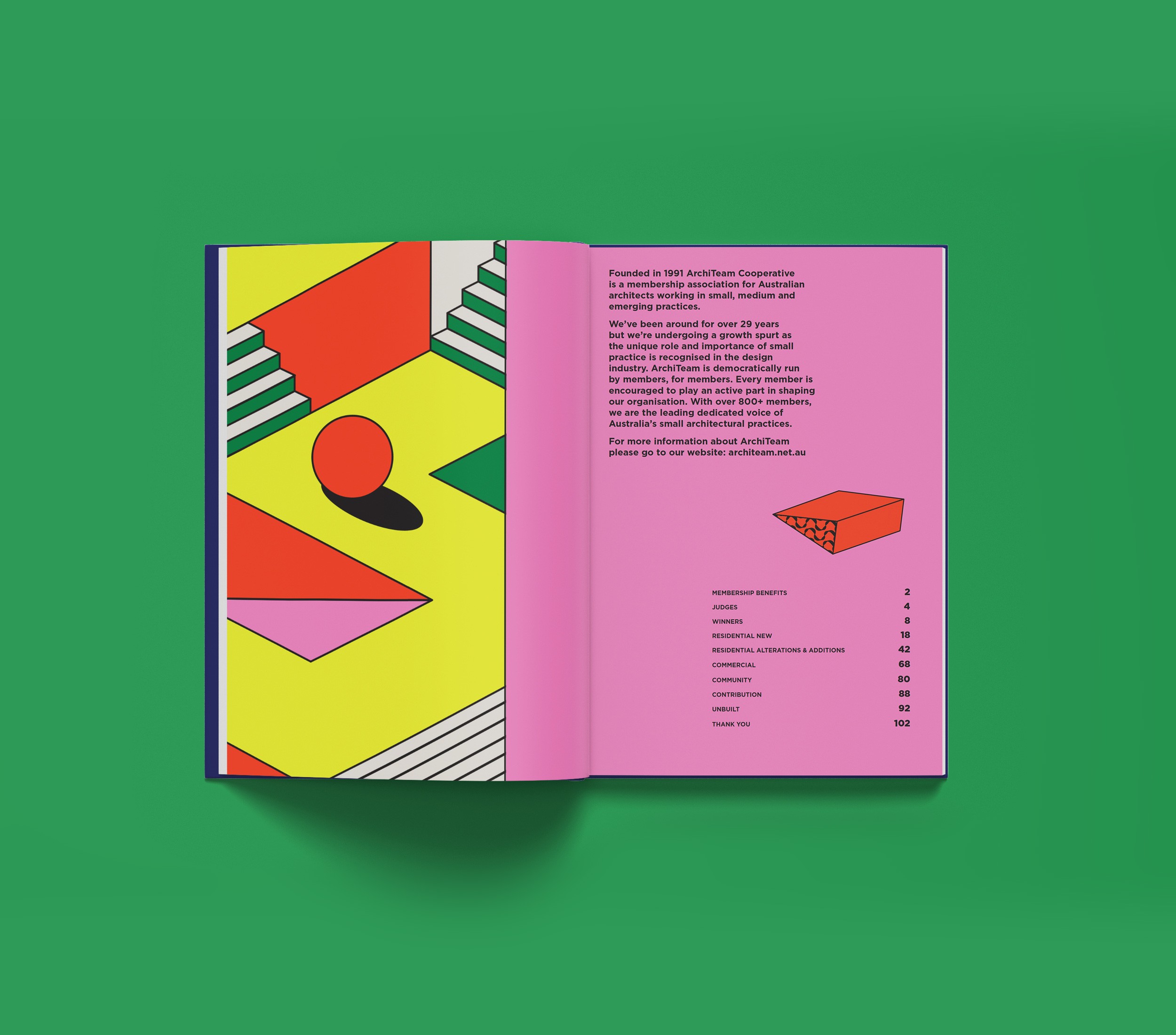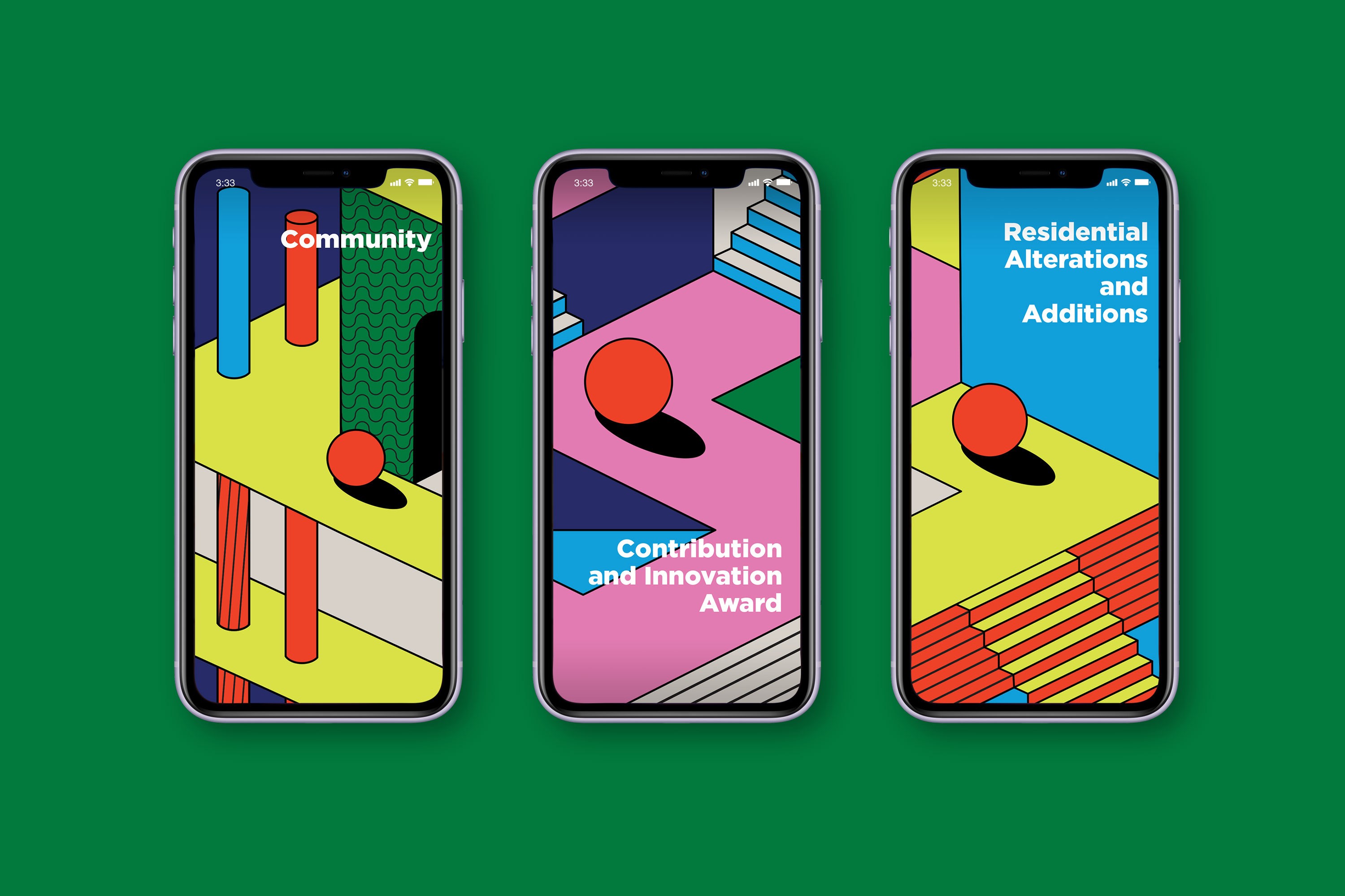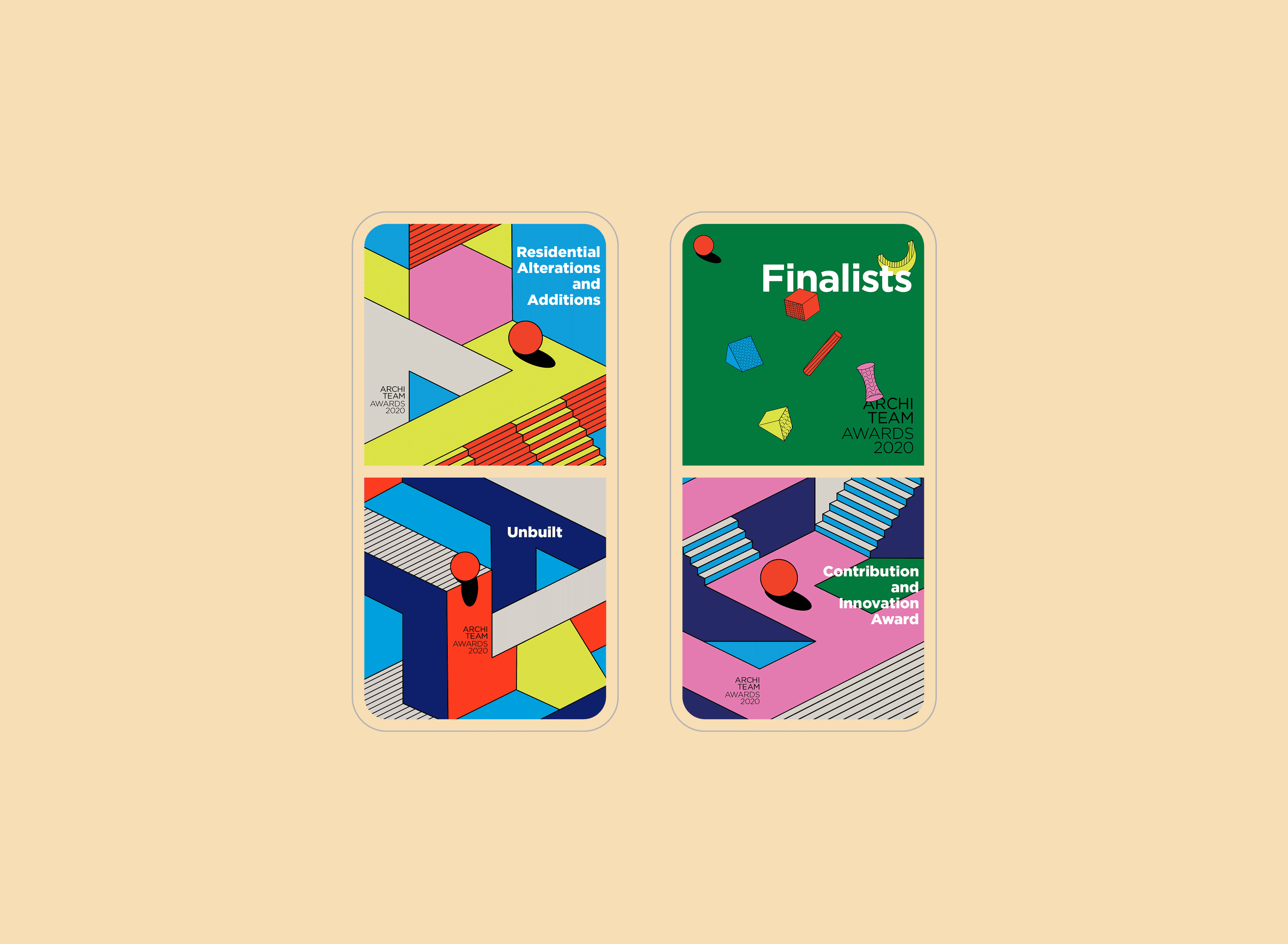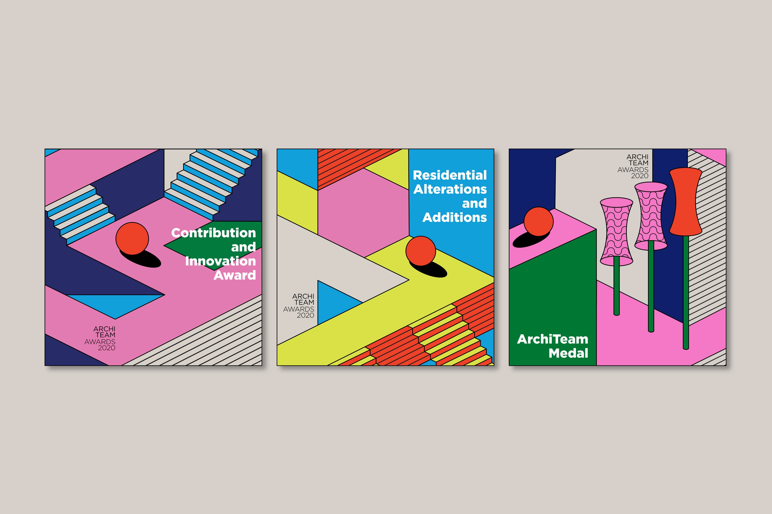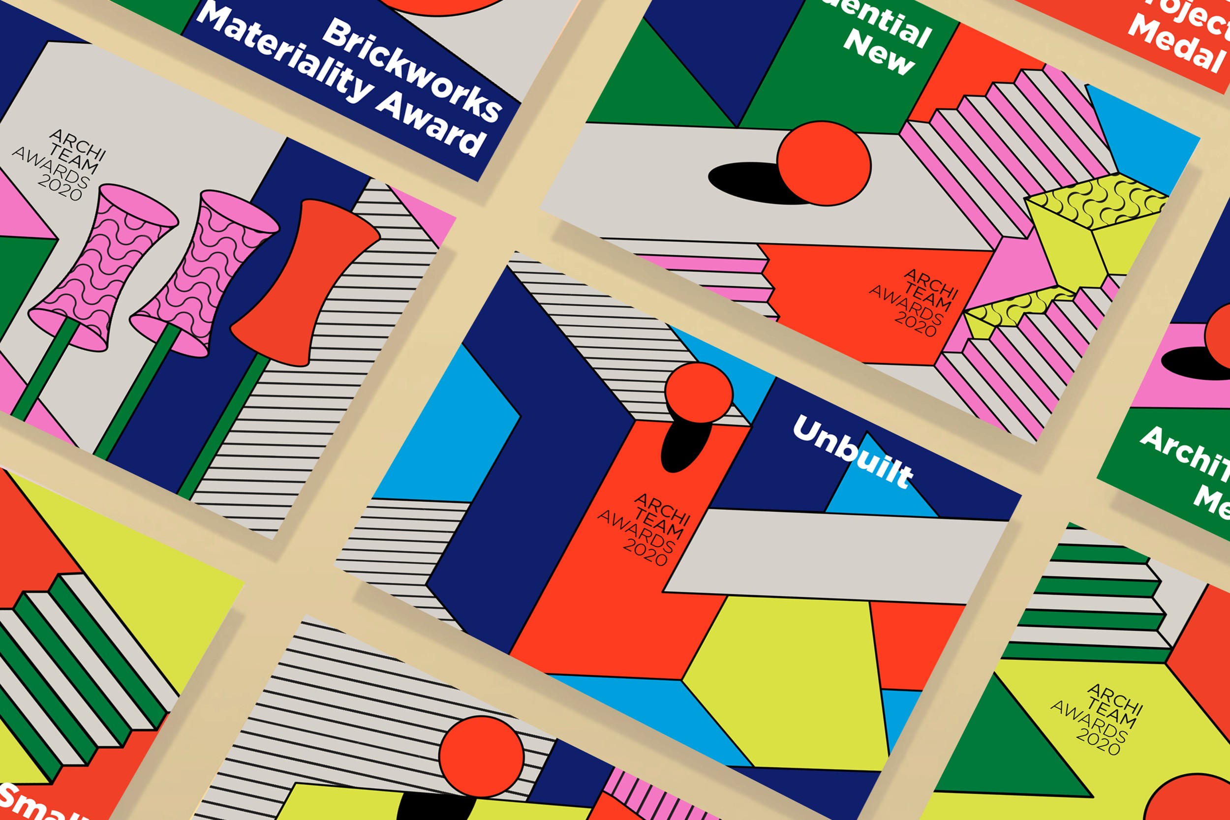 In our second commission for the ArchiTeam Awards, we built a bold and activating brand suited to an online event restricted by the constraints of the COVID-19 pandemic. Creating a series of graphic spaces, we explored impossible structures and unfathomable perspectives, hampered by none of the constraints of the physical world. Our artworks evoke extraordinary environments inspired by Futurism, Buckminster Fuller’s geodesic dome, Fascist architecture and the German Expressionist film, Metropolis. The event branding amplifies the potential of the impossible and the unreal, as ArchiTeam captures a pivotal moment to convert a popular annual program into their inaugural annual awards festival.