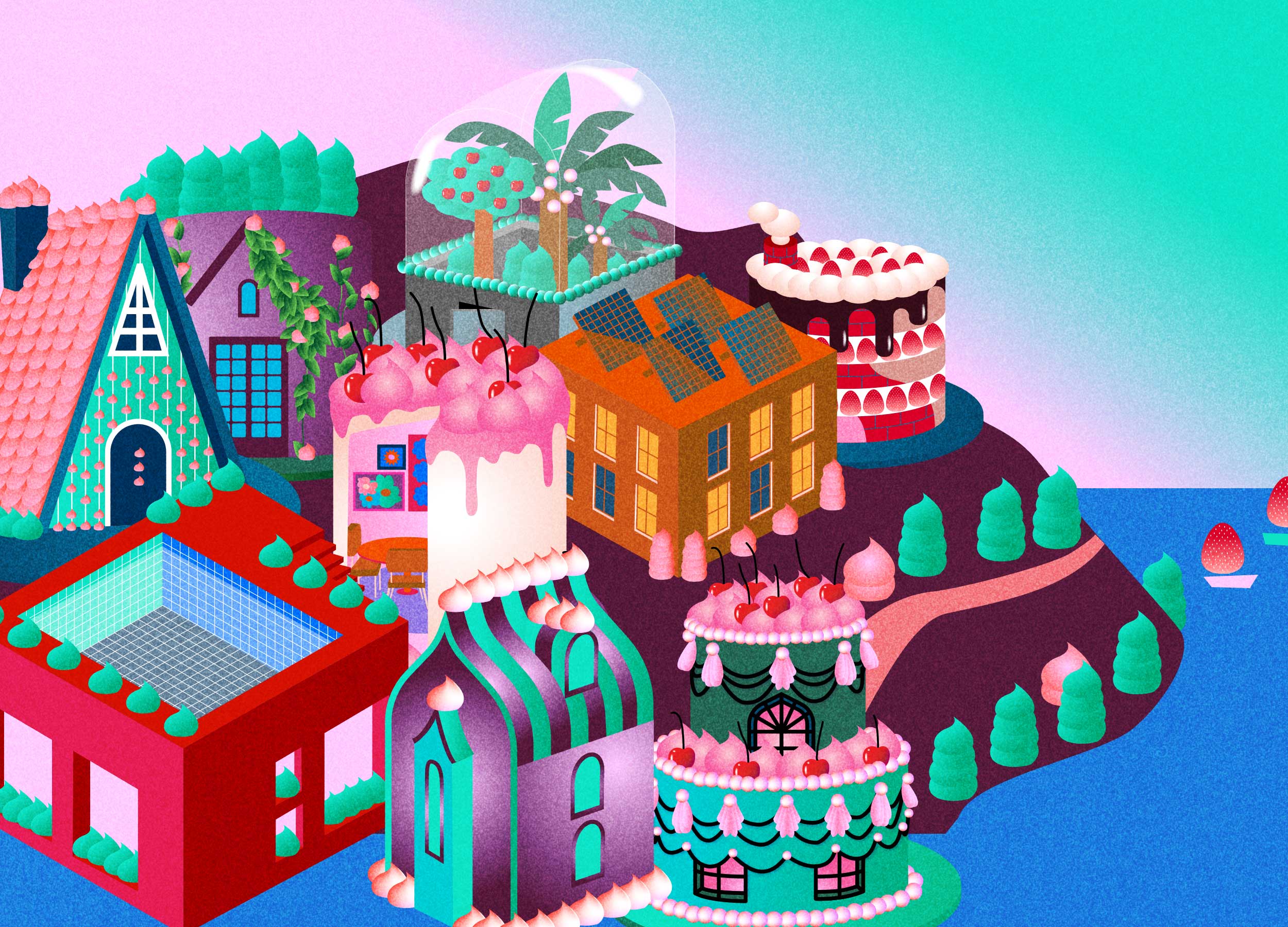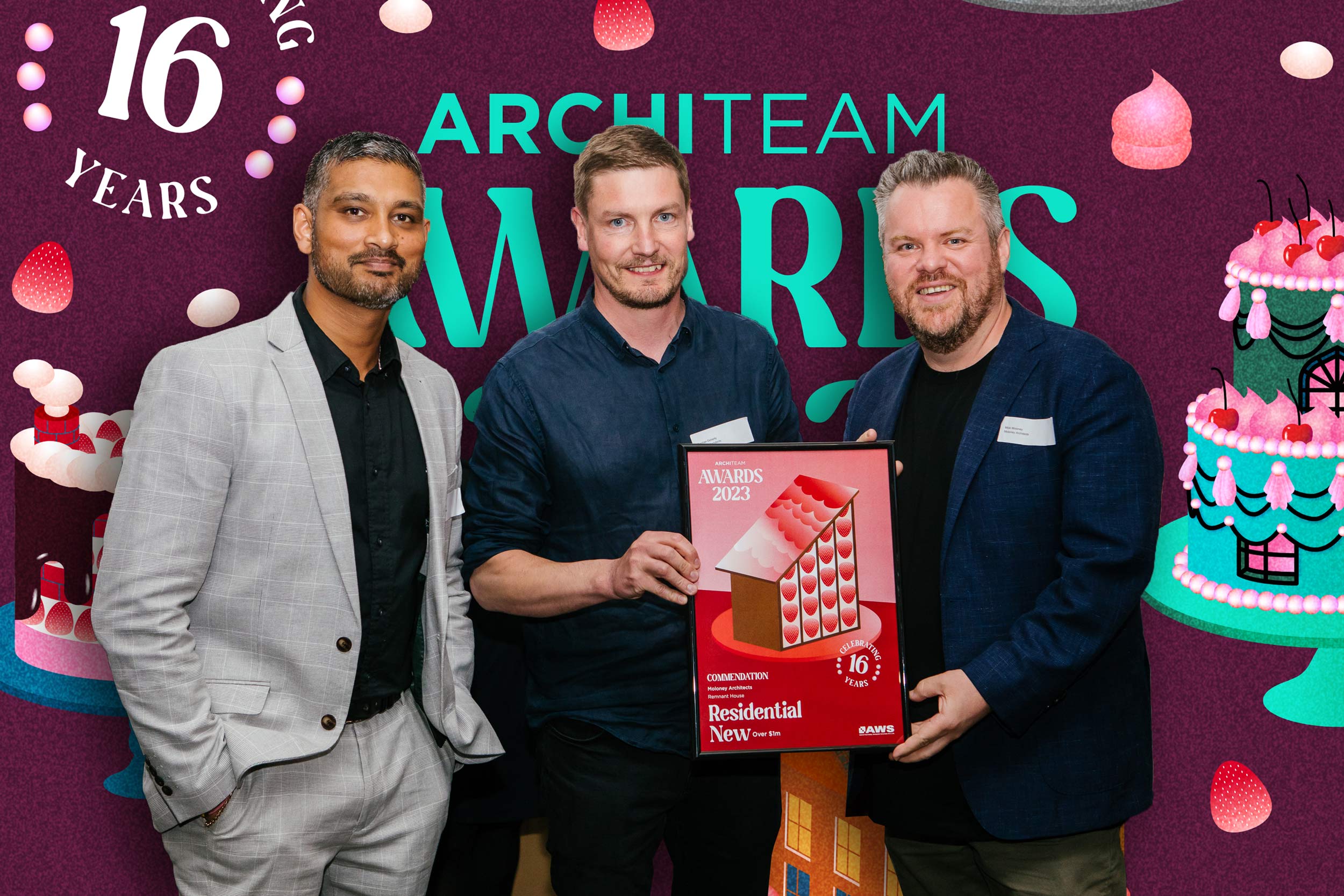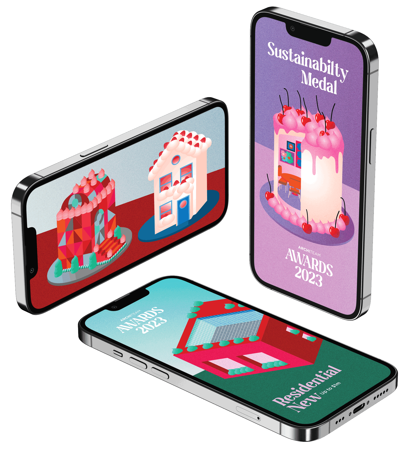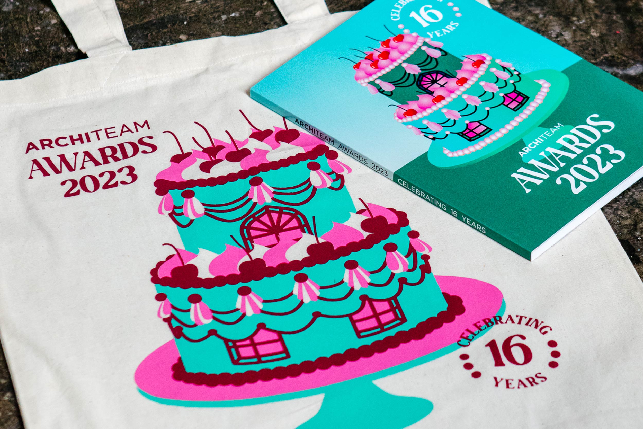 To celebrate the 16th year of the ArchiTeam Awards we delved into the colourful world of cake decoration to build a range of celebratory architectural treats. Bespoke illustrations were created to represent each award category, saturated colour and texture creating bold and unexpected combinations fit for a sweet sixteenth year celebration. The ArchiTeam awards celebrate member contribution to the Australian design community in a public forum, showcasing innovative design by Australia’s small to medium architectural practices.
