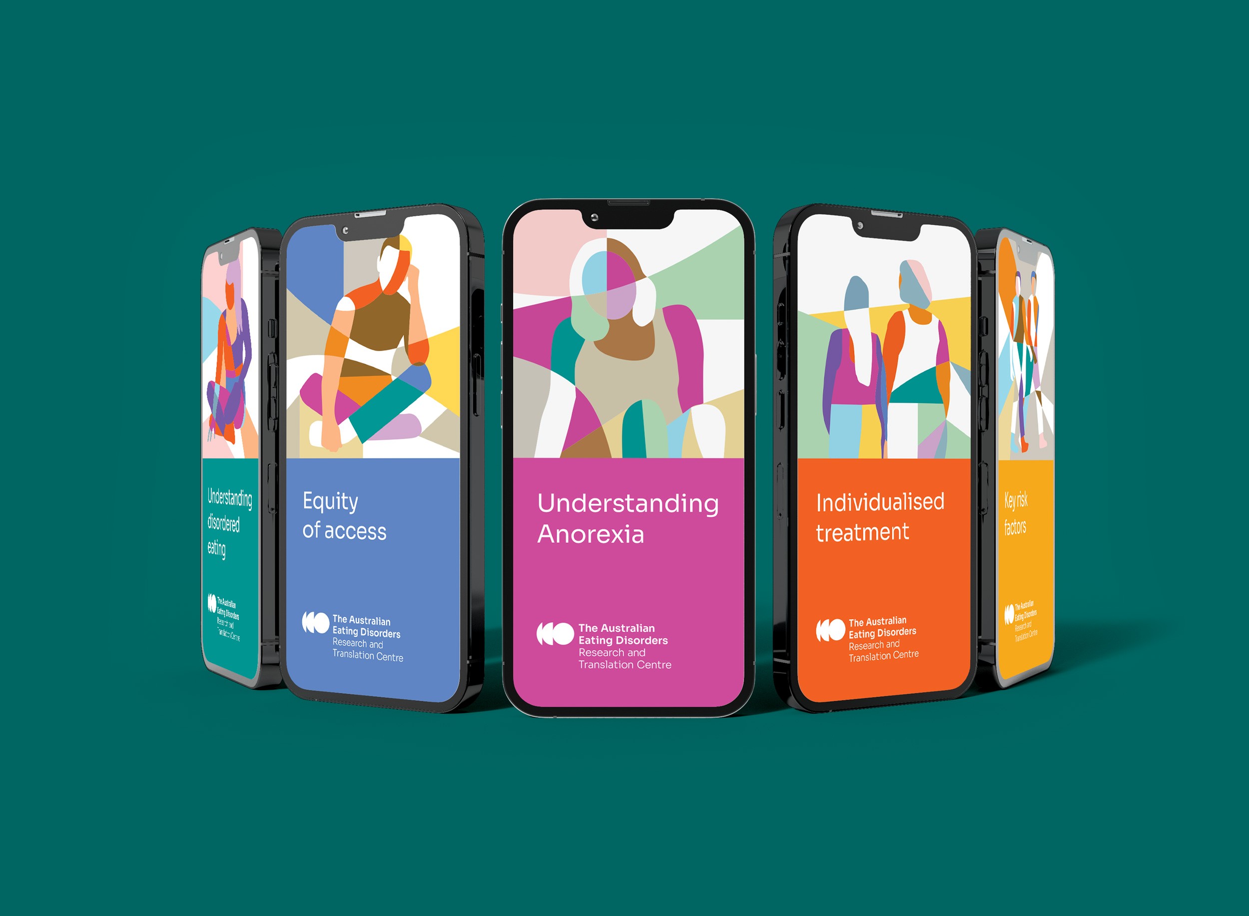 The Australian Eating Disorders Research and Translation Centre (AEDRTC) coordinates a national approach to eating disorder research and translates findings into practice, with the goal of reducing the burden on Australians living with an eating disorder and their loved ones. Design Democracy created a new brand identity for AEDRTC that symbolises collaboration, connection and community. Organic portrait illustrations provide a suite of imagery that explores inclusive body imagery and builds a warm, human-centred brand tone.