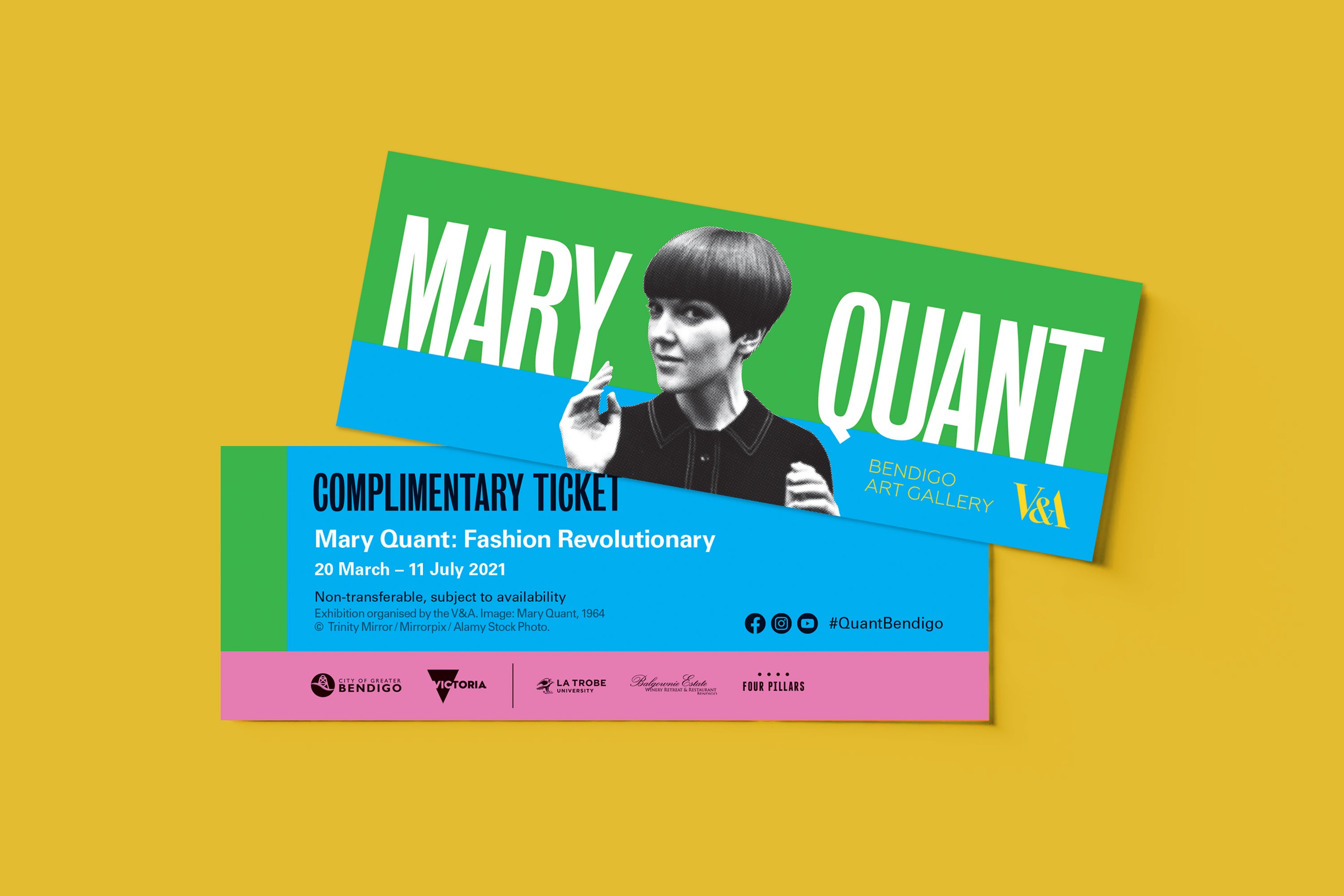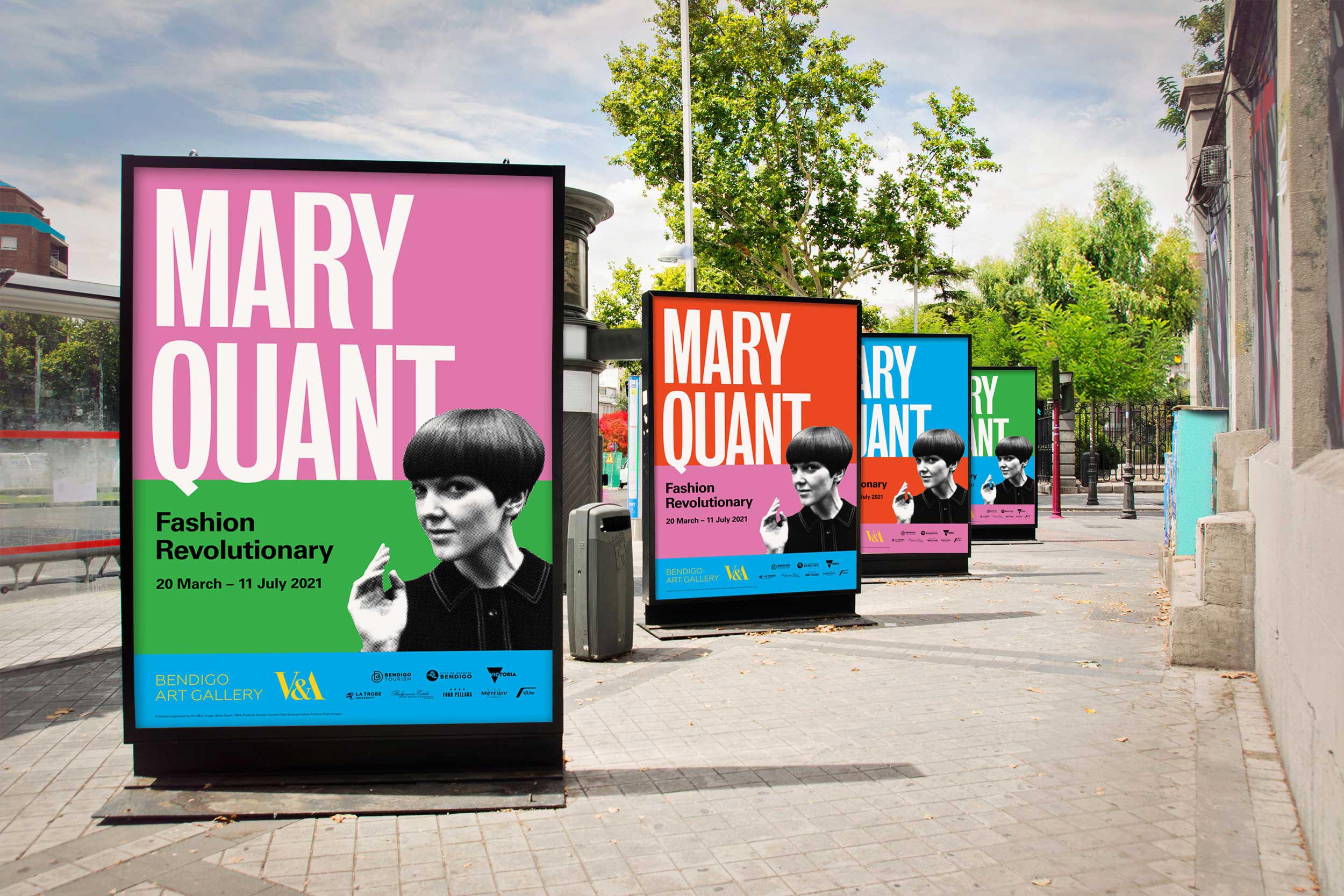 London’s V&A exhibition, Mary Quant: Fashion Revolutionary, exclusive to Bendigo Art Gallery in Australia. Reimagining the show for Australian audiences, we sought to celebrate Quant’s courage to disrupt and to advocate for women’s power: a perfectly timed retrospective for the #metoo era. Mary Quant captured the zeitgeist when she unshackled women’s fashion in 1960s London. Relentlessly daring, she hiked hemlines, removed bones from bodices and brought boutique fashion to the affordable mainstream. Carefully navigating guidelines set by the V&A and the Mary Quant brand, we tackled a gallery brief brimming with creative licence. Quant-inspired pattern and colour immersed visitors throughout the gallery along with a bright daisy-shaped selfie booth that playfully reimagines the iconic Quant daisy symbol.