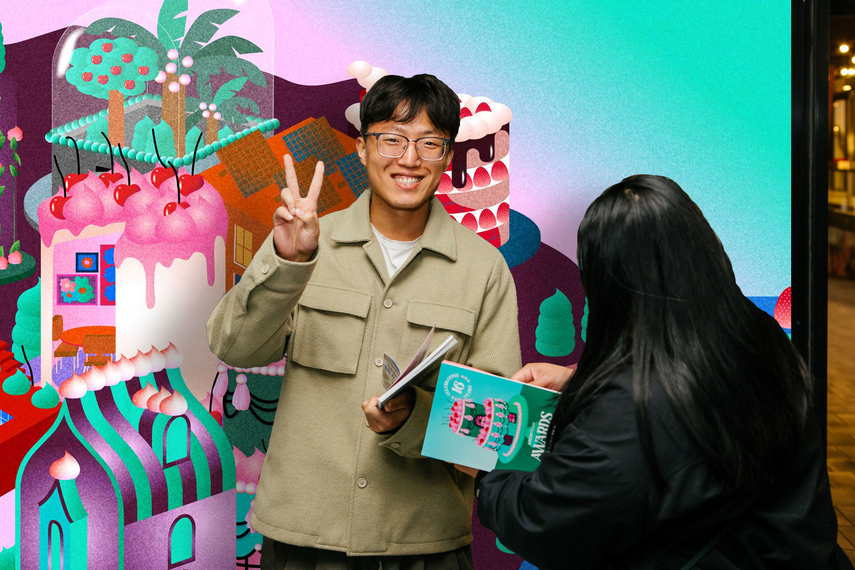 Bespoke illustrations were created for each award category, drawing on the rich visual language of confectionery — saturated colour, lavish texture, and bold, unexpected combinations that bring a sense of joy and occasion to the identity. The result is a campaign that wears its sweet sixteenth with pride, as layered and considered as the innovative design work it puts on display.