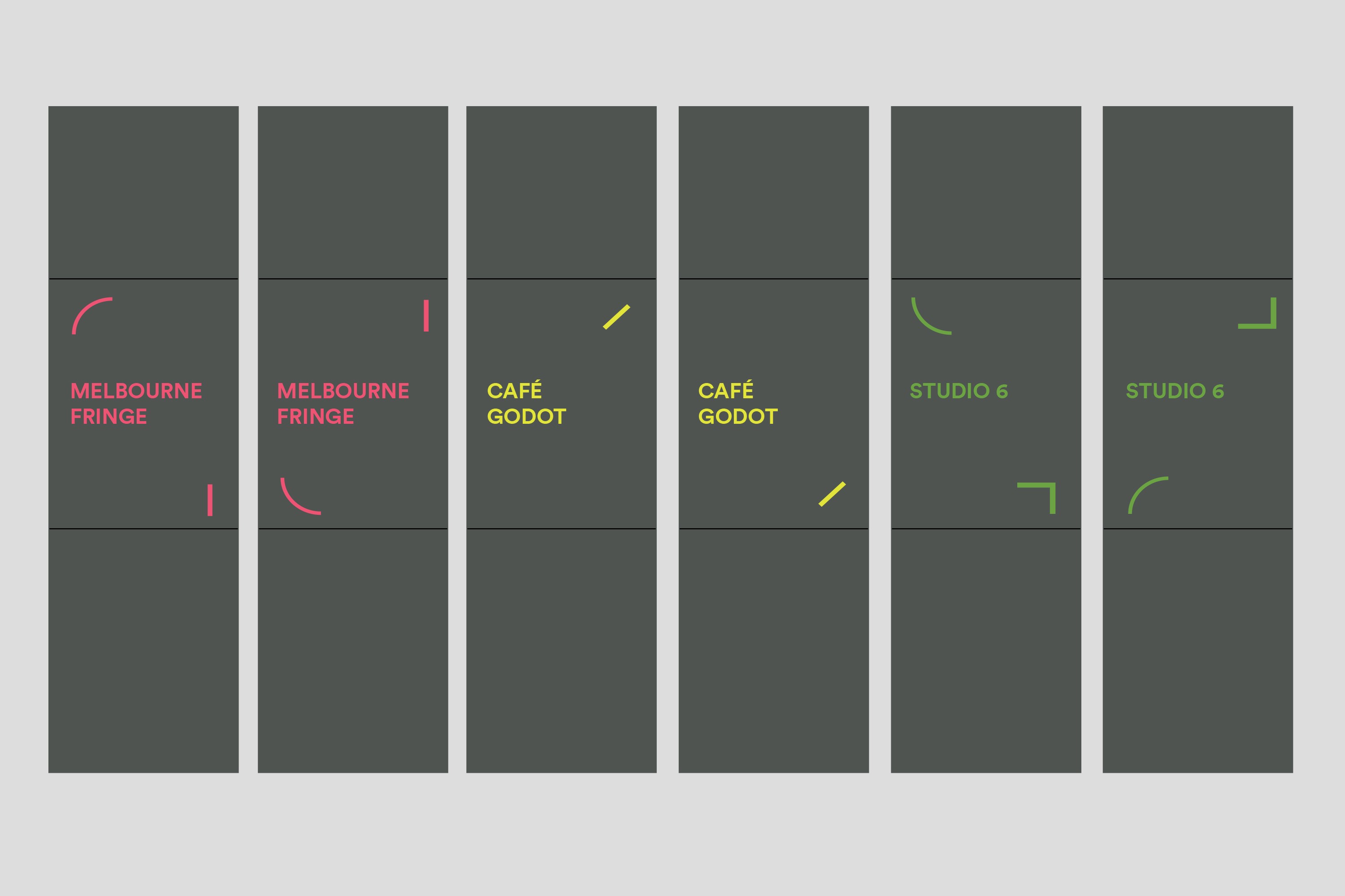 Creative Spaces Guild is a joint initiative of the City of Melbourne and Creative Victoria, working to encourage creative connections and enliven the local neighbourhood with collaborative shared spaces. Design Democracy developed branding and signage for the site and associated gallery spaces. We developed a graphic patterning system that explored the melding of the two existing City of Melbourne Creative Spaces and Guild brands. These linear and organic forms were then applied throughout the site as both wayfinding and decorative elements for gallery spaces.